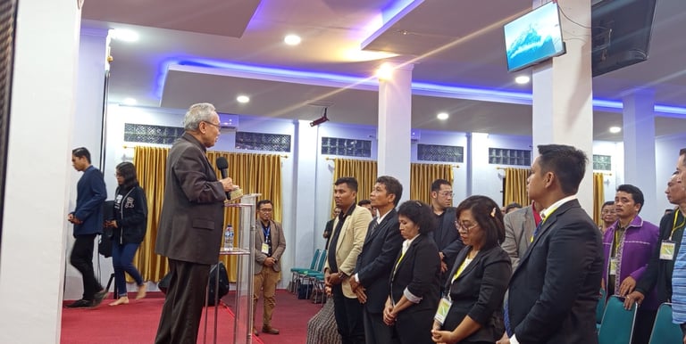 Dalam kunjungannya, Bapak Sudirman Manihuruk memberikan arahan kepada para dosen untuk senantiasa menjaga kualitas pendidikan, terutama dalam pelaksanaan tridarma perguruan tinggi, dan memotivasi mahasiswa agar menjadi pembawa kabar baik kepada masyarakat, sekaligus menginformasikan bahwa Sekolah Tinggi Teologi Suwarnadwipa di Medan adalah salah satu pilihan terbaik bagi lulusan SMA yang ingin melanjutkan pendidikan tinggi. Pada momen bersejarah ini, beliau juga menyerahkan Surat Keputusan resmi dari Kementerian Agama Republik Indonesia mengenai izin penyelenggaraan Sekolah Tinggi Teologi Suwarnadwipa, yang menjadi tonggak penting dalam perjalanan kampus untuk melahirkan agen-agen perubahan dan kemakmuran yang menggenapi panggilan Tuhan.